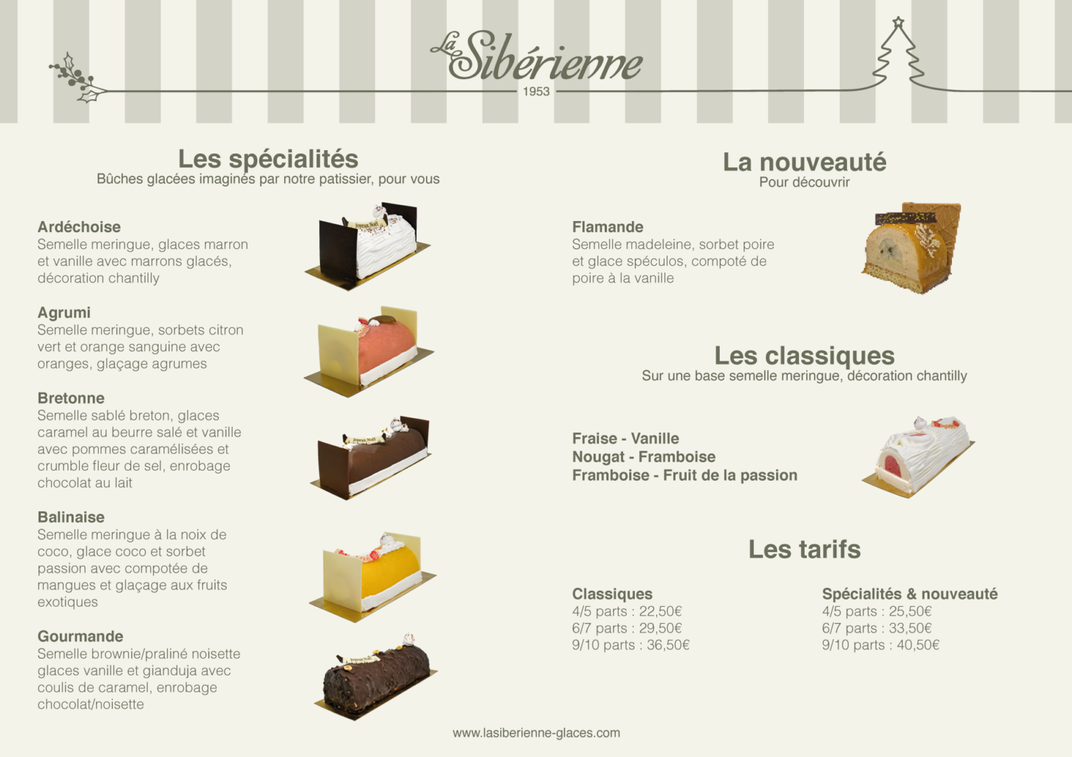 Découvrez la carte ci-dessous et passez votre commande en ligne pour venir directement récupérer votre bûche en boutique.